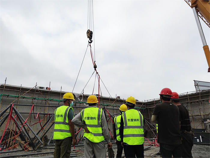 6.为确保.阆中加油站球形网架安装顺利,应有详细的阆中施工组织设计。网架安装必须保证结构的稳定性和不产生的附加变形。